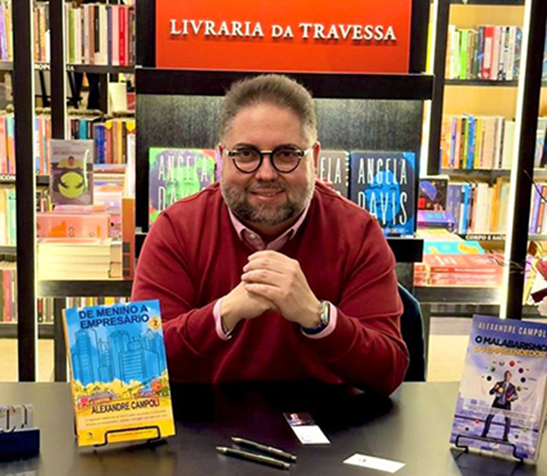 No último dia 11 de agosto, Alexandre Campoli lançou suas obras na Livraria Travessa: “O Malabarismo do Empreendedor” e “De Menino a Empresário”. O Evento contou com a presença especial de sua mãe e amigos próximos em uma noite marcante e cheia de emoção.